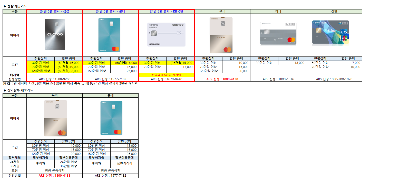 제휴카드 할인 적용시 월 렌탈료 : 510원